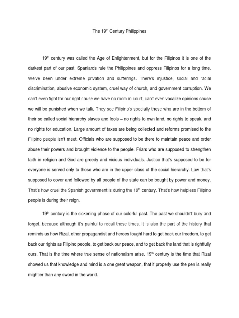 Pdf The Philippines A Century Hence By Jose Rizal A Reflection Paper